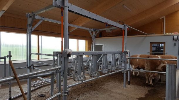 - Sichere, tierfreundliche Aufstellung der Tiere durch das bewährte Einweisbügelsystem