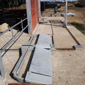 • Überfahrbarer Klappschieber, sog. Doppelklappschieber, der durch ein einfaches Scharnier zusammenklappbar
